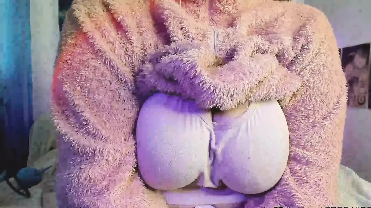 a fat woman in a fluffy suit shows her body