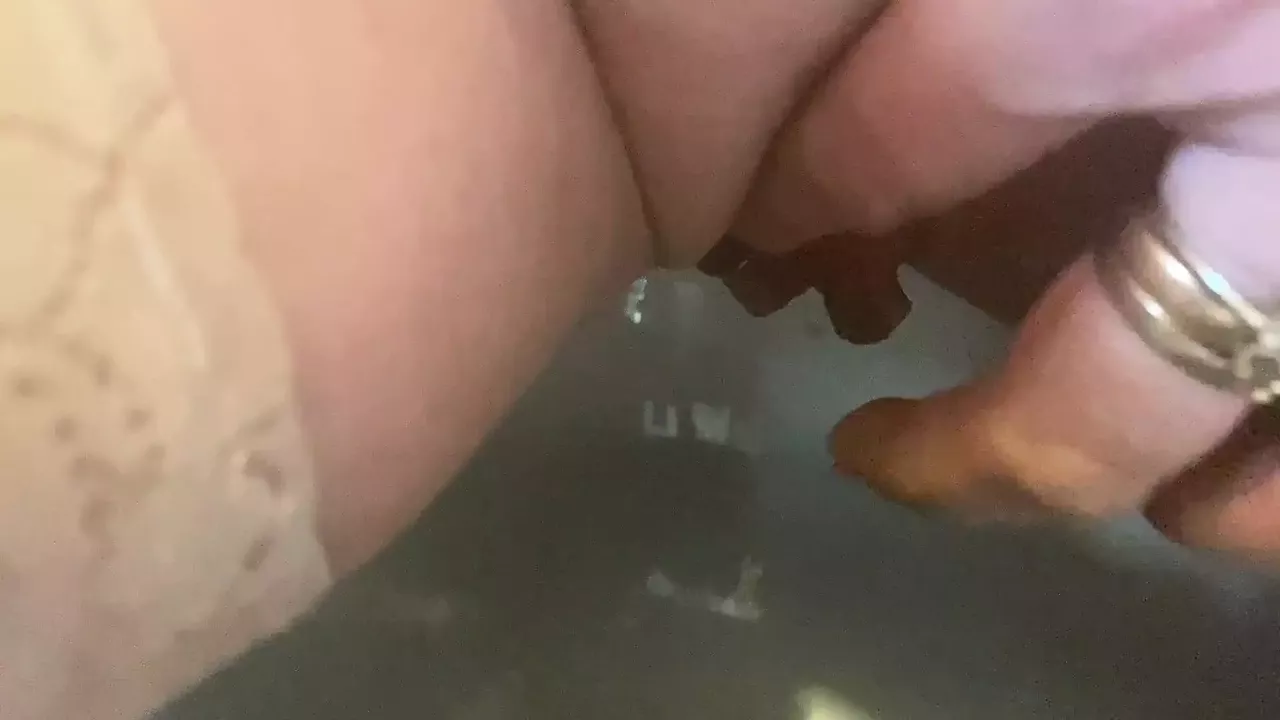 Slim big booty MILF peeing in a secluded outdoor spot.