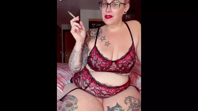 BBW stepmom MILF wake and bake 420 smoking fetish in red and black lingerie