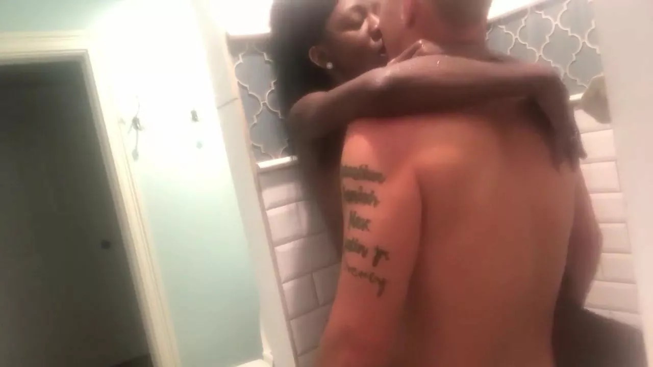 Black wife cheating with neighbour in shower
