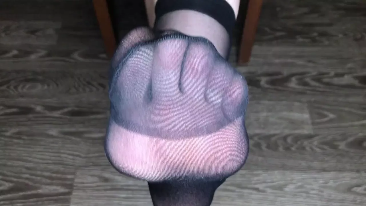 Девушка в черных вкусных носочках показывает стопы и ноги