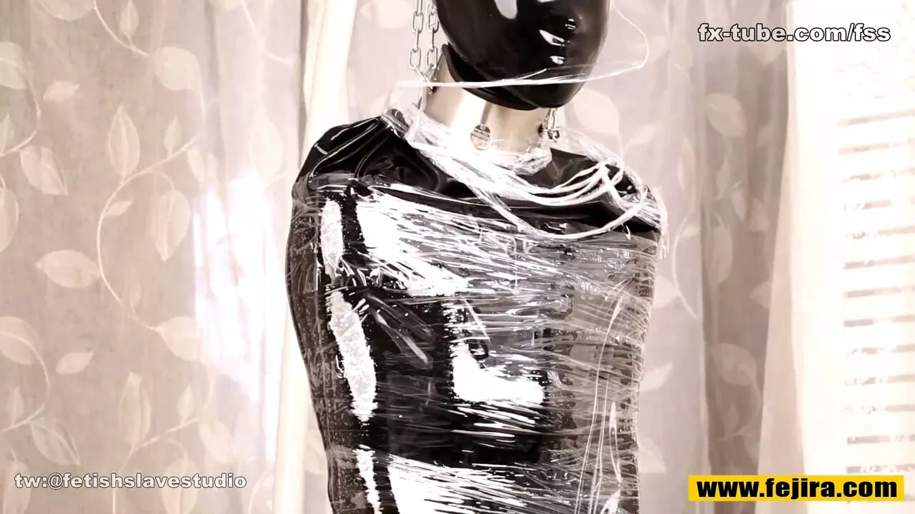 Fejira com Full body wrapped in tight latex clothing and plastic wrap
