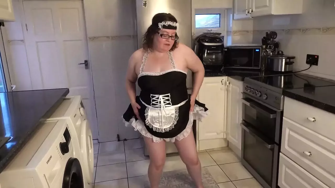 French Maid in the Kitchen Playing with Big Black Dildo