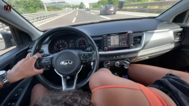 Gli succhio il cazzo in autostrada in pieno giorno, con il culo da fuori e le auto che passano