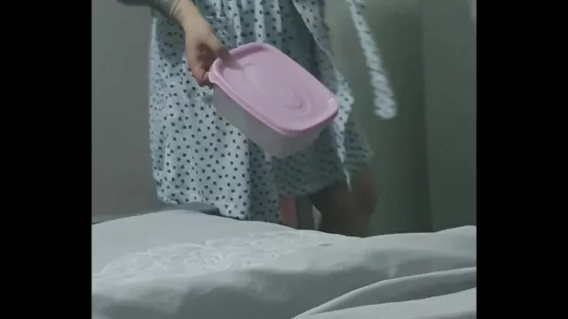 Horny couple sneaks to bedroom for a quick blowjob/handjob, she loves sucking cock