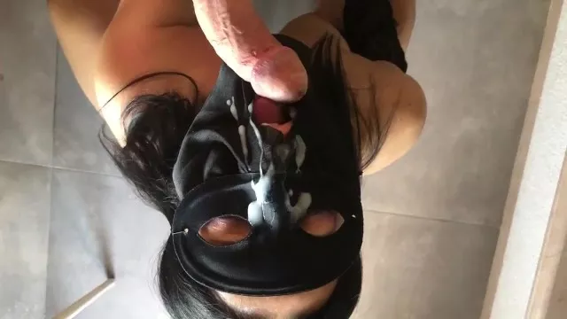 Massive facial cumshot on mask GIRL SURPRISE
