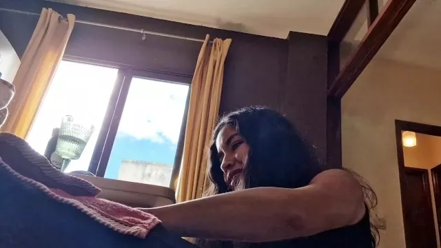 Padrastro esta mojado así que su hijastra lo seca con cariño