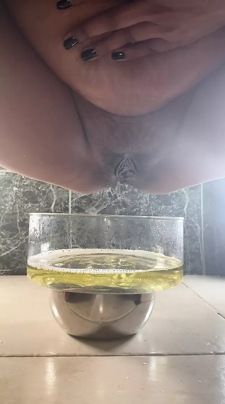 Slim big booty MILF peeing in a secluded outdoor spot.