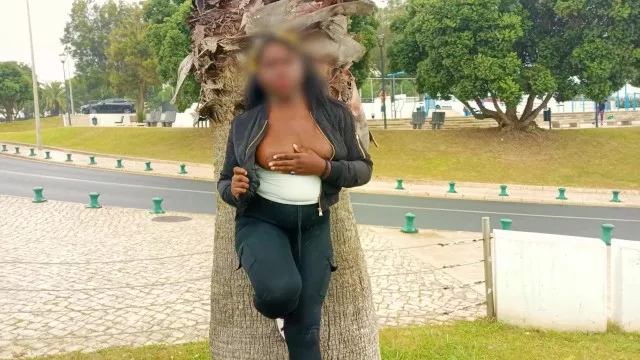 He Pulls out Her Little Tits as She gives Him a Handjob and pulls on His Balls