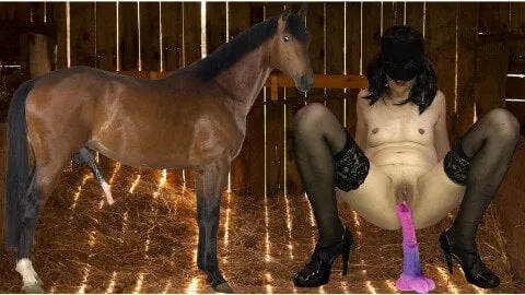 Self Fucking With Huge Horse Cock Dildo - Masked Milf