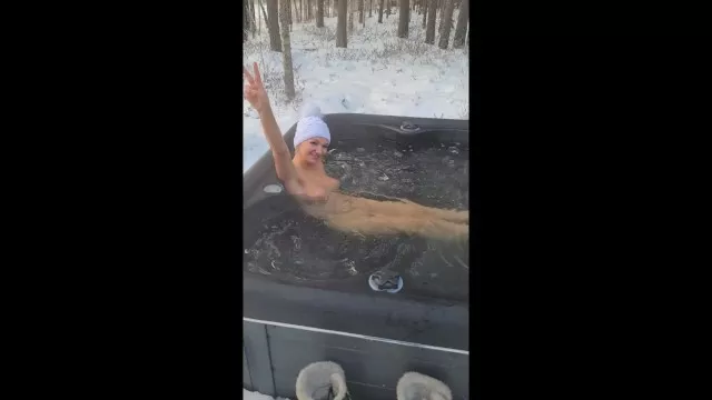 Sexy Milf's boobs bounching nice, when she runs slow motion from Finnish sauna to the jacuzzi