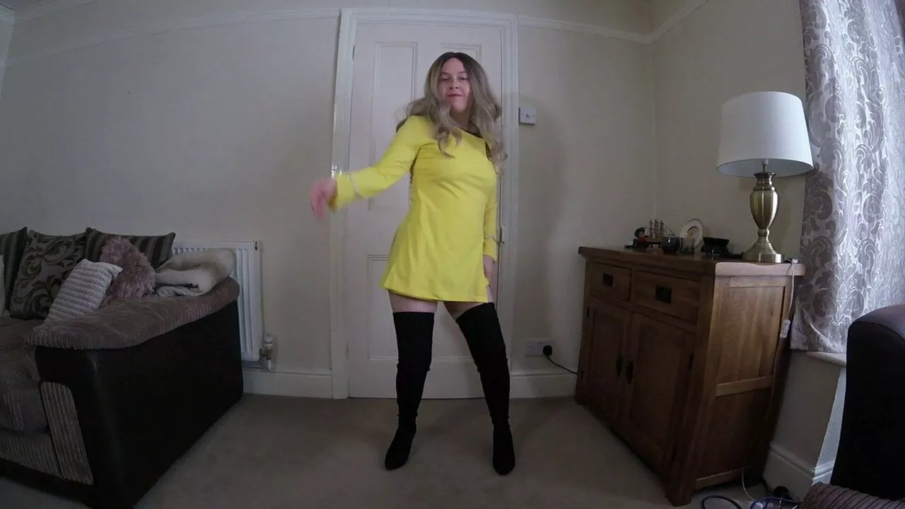 Star Trek cosplay commander in thigh boots striptease
