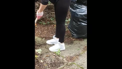 Step Mom Fuck and makes Step Son Cum in her Leggings and Pull them up in the back Yard