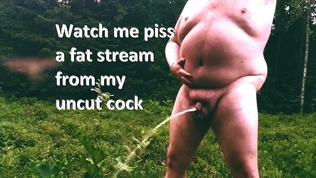 superchub pissing HUGE FAT STREAM of sweet piss, massaging his balls while wife is watchin inside