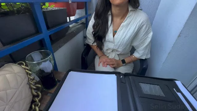 He Pulls out Her Little Tits as She gives Him a Handjob and pulls on His Balls