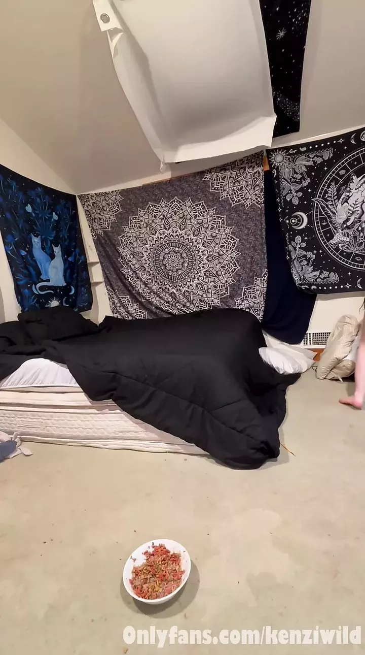 Watch me Kenziwild a goth tattooed whore showcasing my undies as I make the bed
